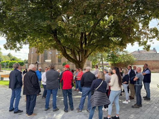 Über 40 Teilnehmer konnte der Geschichtsverein in der Gemeinde Niederzier zum Tag des Offnen Denkmals beim Rundgang durch Hambach begrüßen. Unter Führung der beiden ortskundigen Ulrich Fischer und Günther Dahmen erfuhren die Anwesenden sowohl geschichtliche Hintergründe als auch die eine oder andere persönliche Anekdote über die einzelnen historisch bedeutsamen Gebäude des Ortes wie z.B. Burg Obbendorf, die Pfarrkirche St. Antonius oder das ehemalige landesherrliche Schloss Hambach. Nach über 2 Stunden fand der Rundgang beim ehemaligen Forsthaus seinen Abschluss.