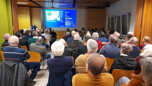 Großen Zuspruch in der Bevölkerung fand eine Veranstaltung des Geschichtsvereins in der Gemeinde Niederzier, die am Dienstag, dem 25. November 2025 im voll besetzten Oberzierer Pfarrheim stattfand. Nach der Begrüßung durch den Vorsitzenden Helmut Krebs erläuterte der Referent Albert Trostorf aus Merode den Ablauf und die Hintergründe der militärischen Maßnahmen im Februar und März 1945. Seine speziellen Kenntnisse hat sich der Referent bei diversen Aufenthalten in den Vereinigten Staaten erworben, wo er umfangreiches Quellenmaterial überwiegend im Washingtoner Nationalarchiv einsehen und sammeln konnte. Aus seinem reichhaltigen Fundus präsentierte er dem Publikum eindrucksvolles Bild- und Kartenmaterial, das er über die Orte der Gemeinde Niederzier zusammengestellt hatte.